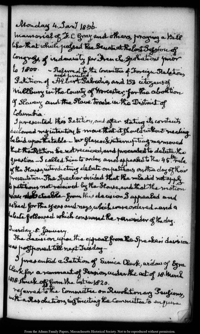 View full, authoritative transcriptions with page images of the diaries at John Quincy Adams Digital Diary part of the Primary Source Cooperative at the MHS.