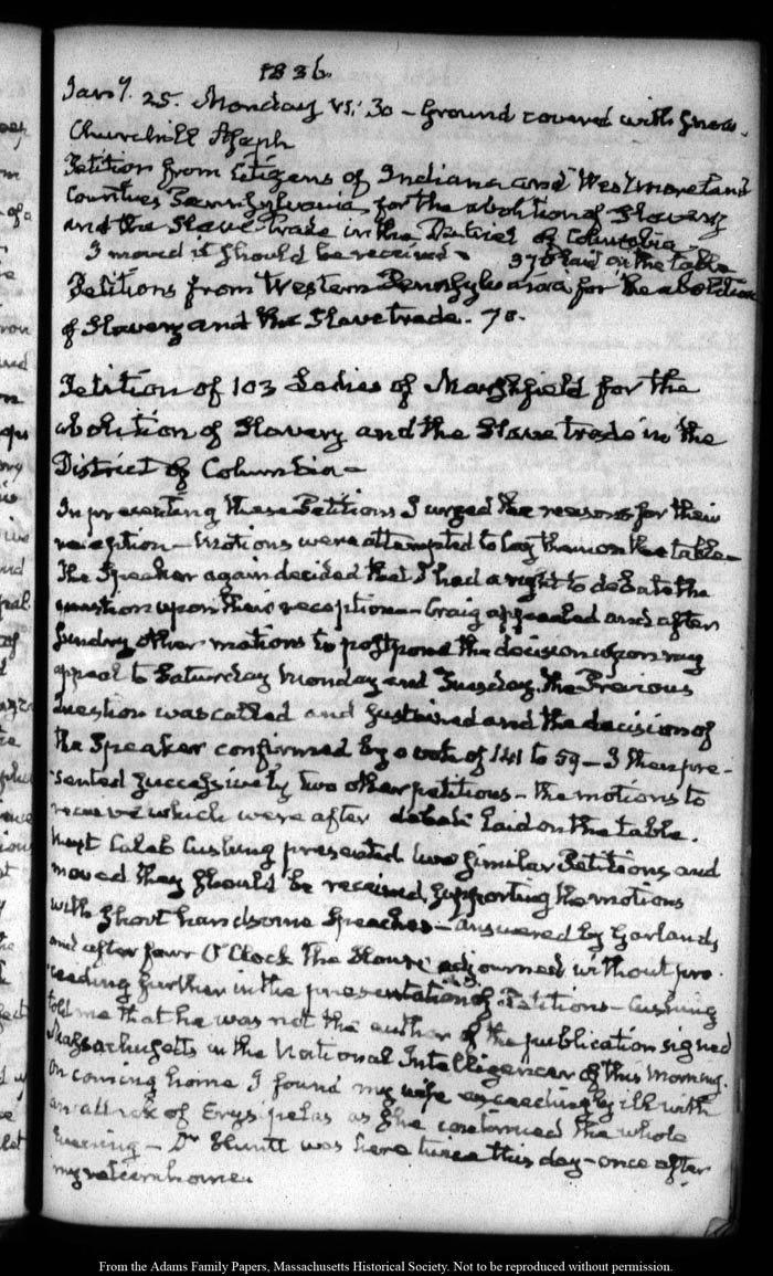 View full, authoritative transcriptions with page images of the diaries at John Quincy Adams Digital Diary part of the Primary Source Cooperative at the MHS.
