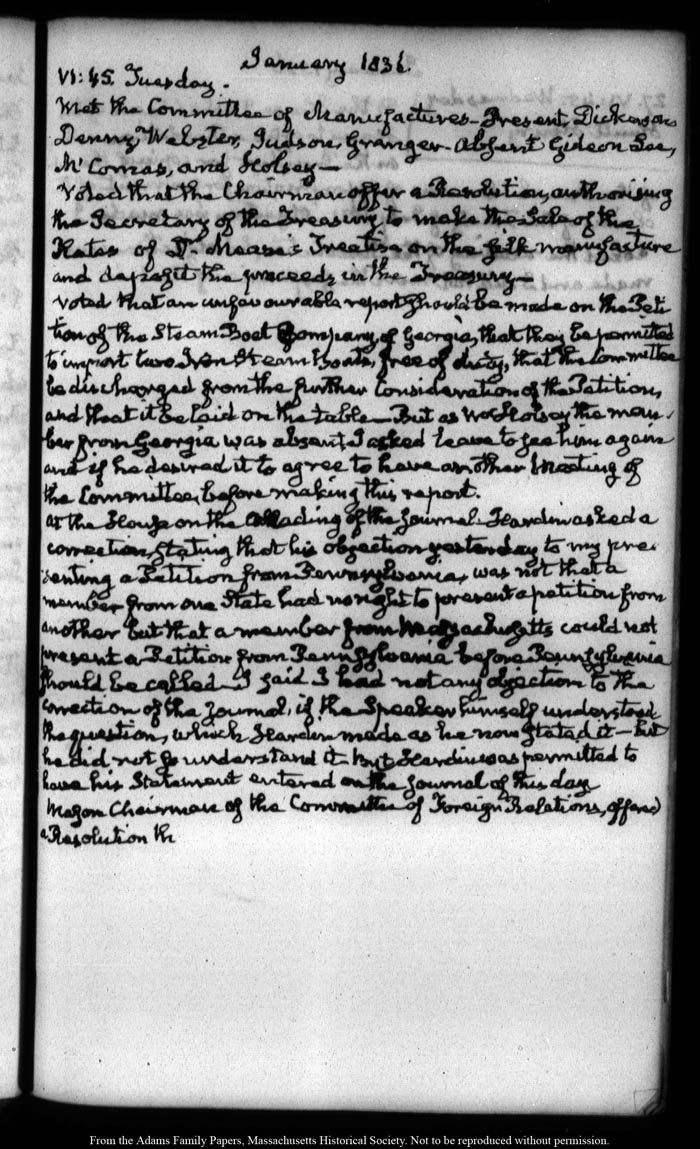 View full, authoritative transcriptions with page images of the diaries at John Quincy Adams Digital Diary part of the Primary Source Cooperative at the MHS.