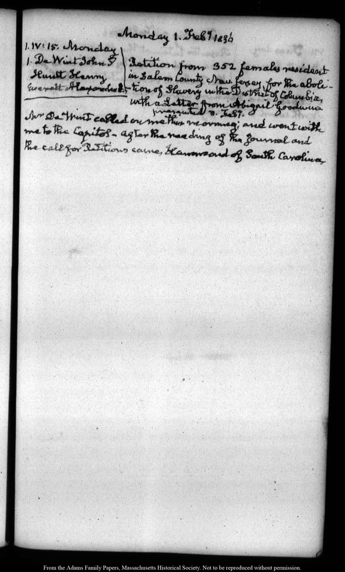 View full, authoritative transcriptions with page images of the diaries at John Quincy Adams Digital Diary part of the Primary Source Cooperative at the MHS.