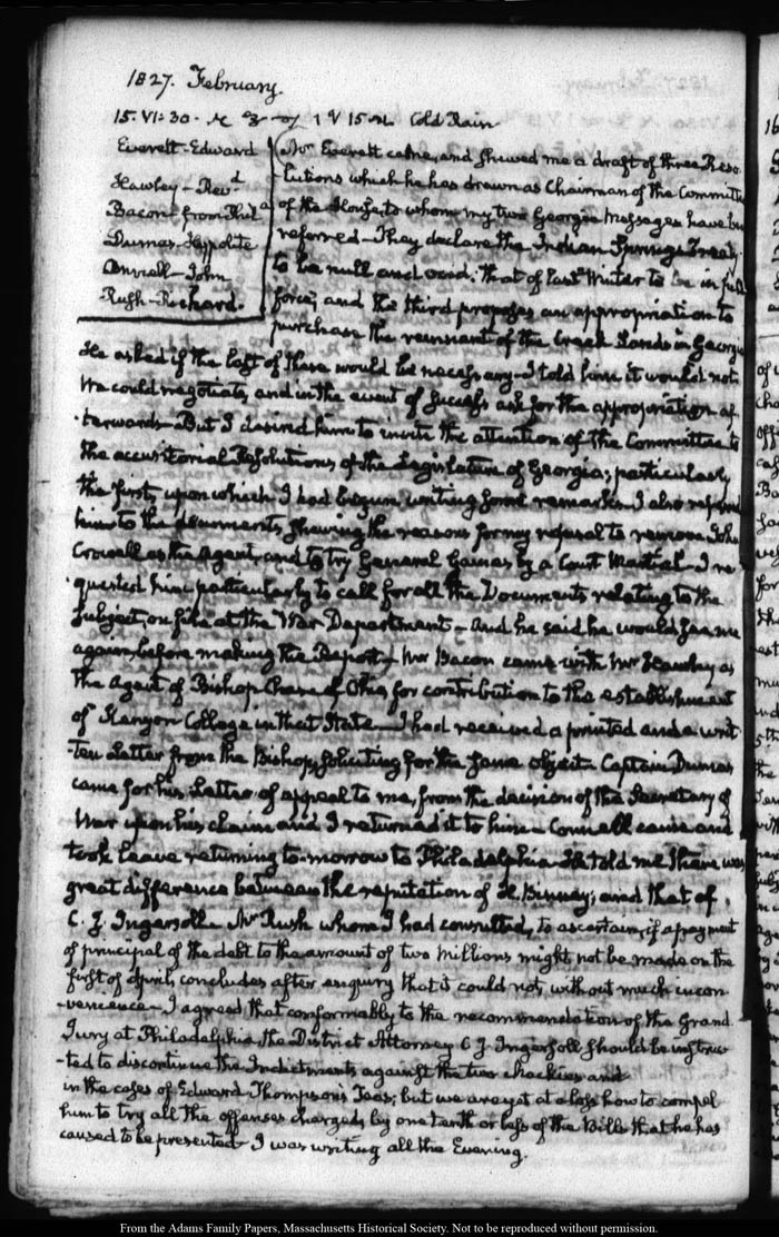 View full, authoritative transcriptions with page images of the diaries at John Quincy Adams Digital Diary part of the Primary Source Cooperative at the MHS.