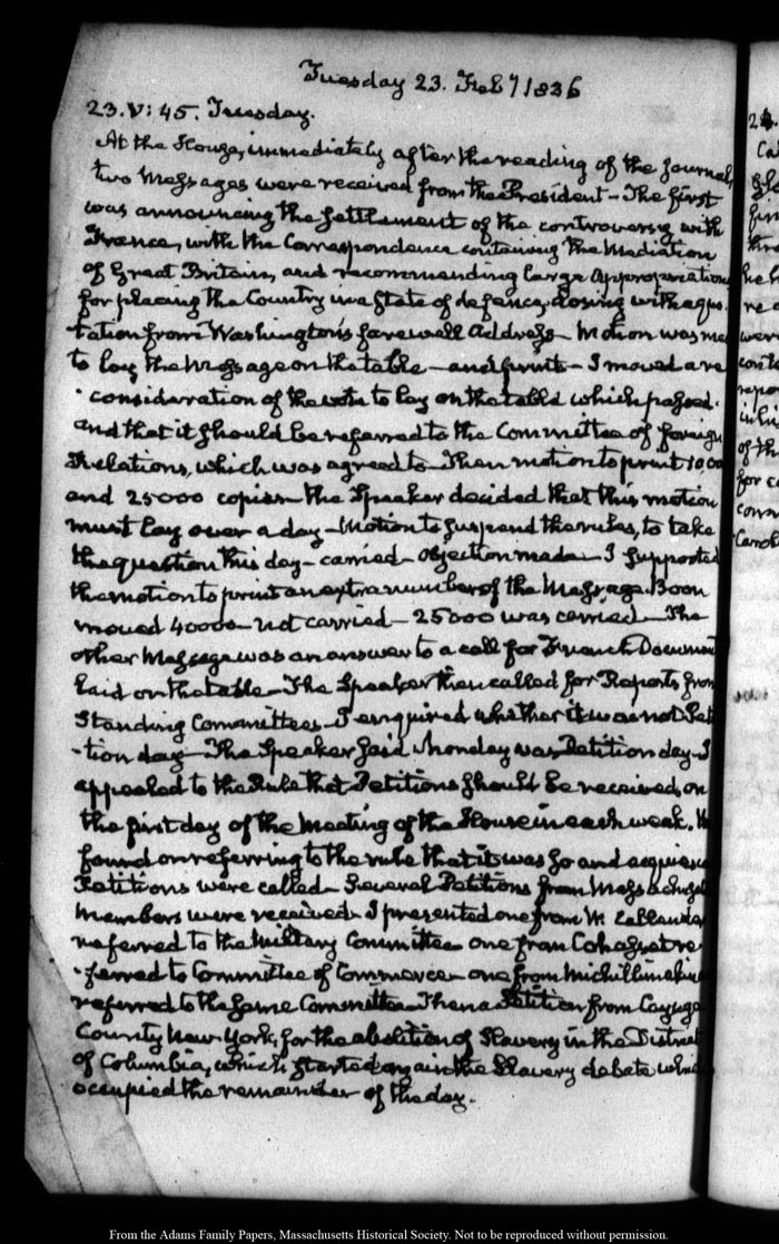 View full, authoritative transcriptions with page images of the diaries at John Quincy Adams Digital Diary part of the Primary Source Cooperative at the MHS.