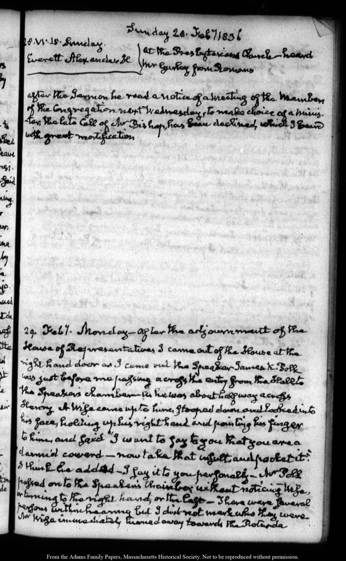 View full, authoritative transcriptions with page images of the diaries at John Quincy Adams Digital Diary part of the Primary Source Cooperative at the MHS.
