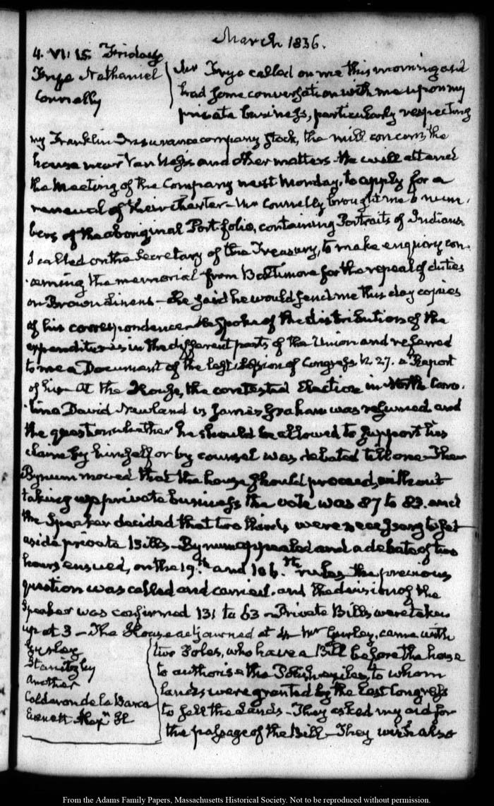 View full, authoritative transcriptions with page images of the diaries at John Quincy Adams Digital Diary part of the Primary Source Cooperative at the MHS.