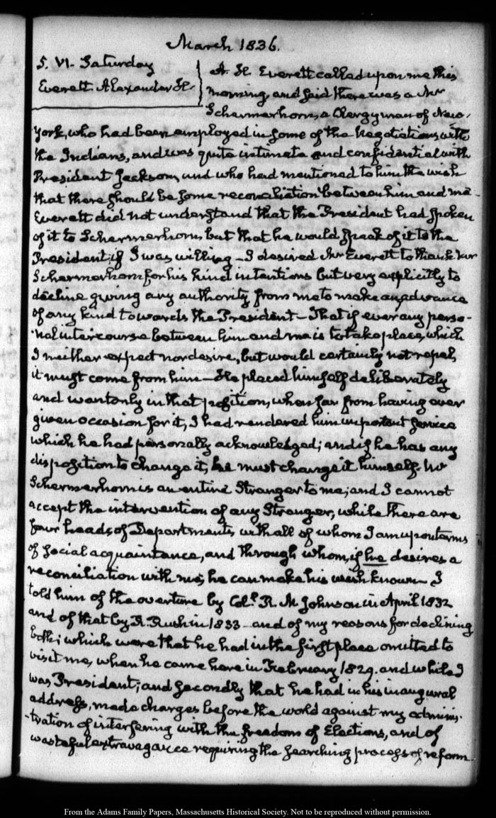 View full, authoritative transcriptions with page images of the diaries at John Quincy Adams Digital Diary part of the Primary Source Cooperative at the MHS.