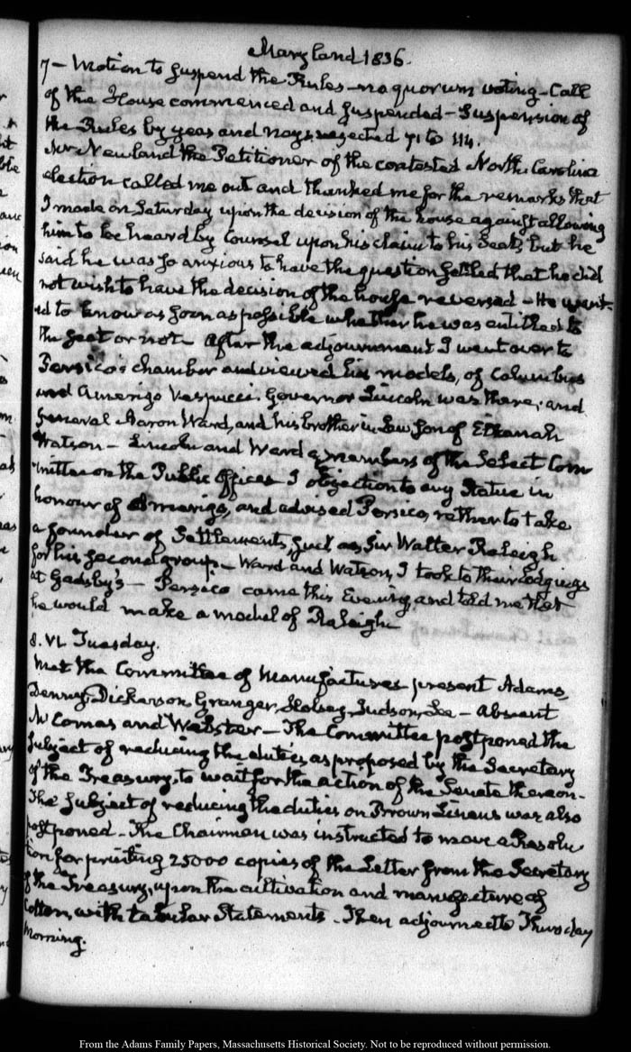 View full, authoritative transcriptions with page images of the diaries at John Quincy Adams Digital Diary part of the Primary Source Cooperative at the MHS.