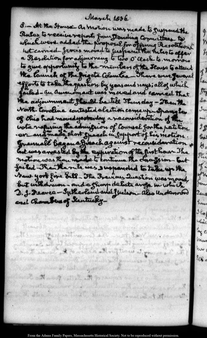 View full, authoritative transcriptions with page images of the diaries at John Quincy Adams Digital Diary part of the Primary Source Cooperative at the MHS.