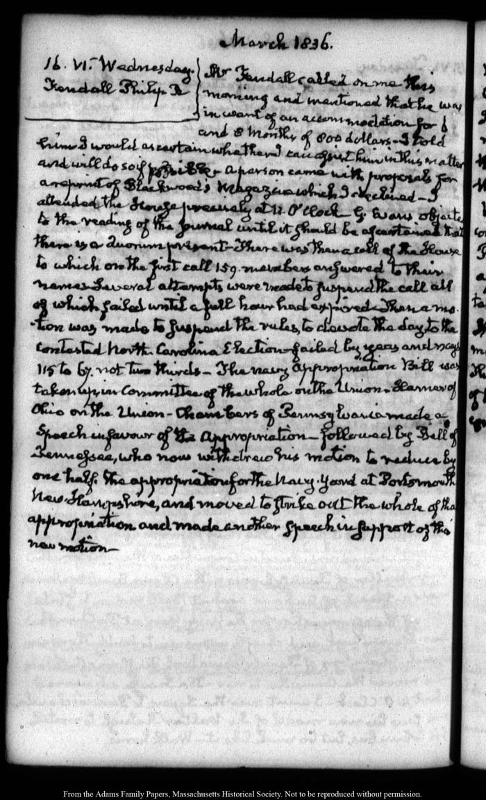 View full, authoritative transcriptions with page images of the diaries at John Quincy Adams Digital Diary part of the Primary Source Cooperative at the MHS.