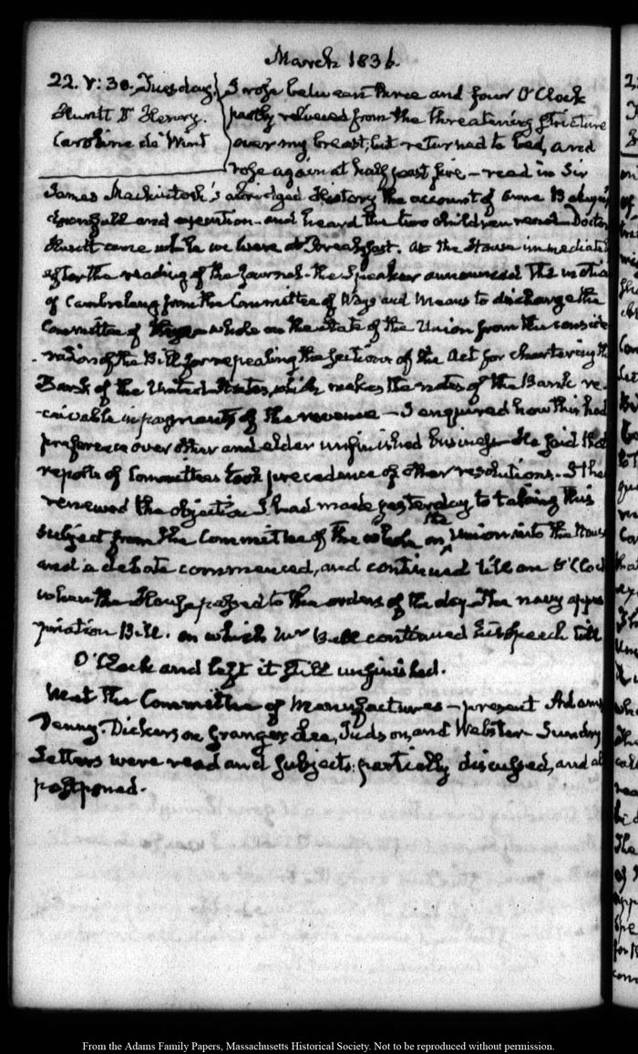 View full, authoritative transcriptions with page images of the diaries at John Quincy Adams Digital Diary part of the Primary Source Cooperative at the MHS.