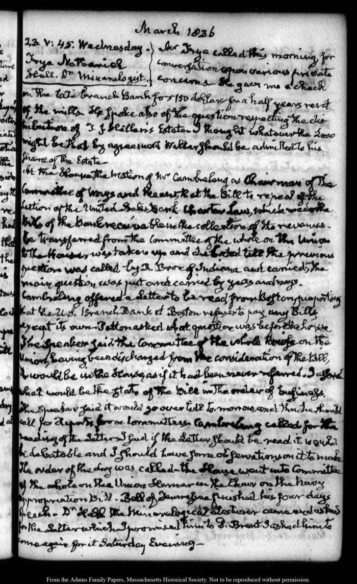 View full, authoritative transcriptions with page images of the diaries at John Quincy Adams Digital Diary part of the Primary Source Cooperative at the MHS.