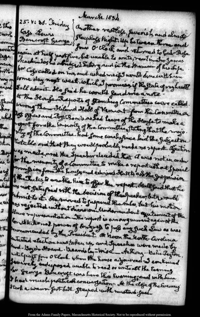 View full, authoritative transcriptions with page images of the diaries at John Quincy Adams Digital Diary part of the Primary Source Cooperative at the MHS.
