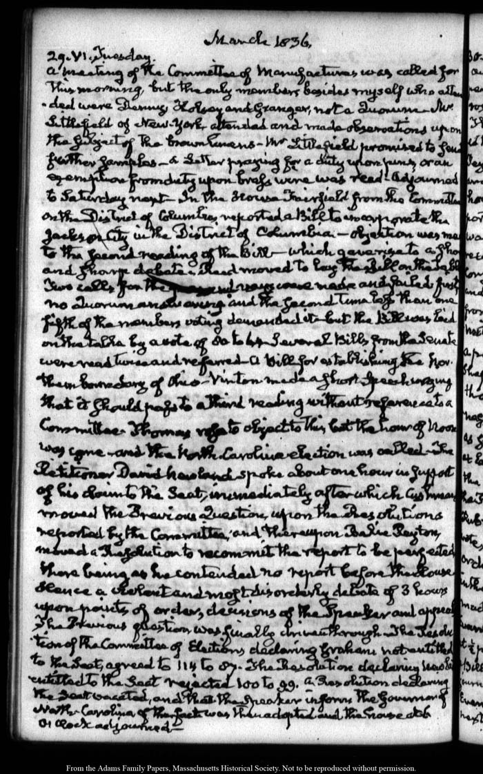 View full, authoritative transcriptions with page images of the diaries at John Quincy Adams Digital Diary part of the Primary Source Cooperative at the MHS.