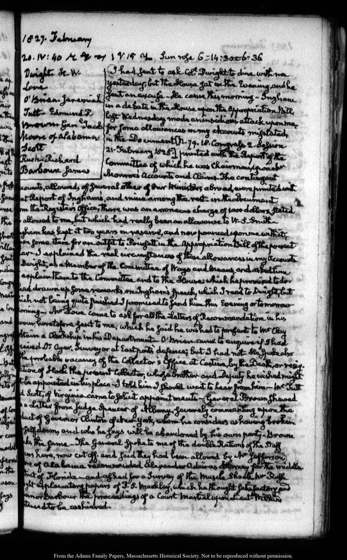 View full, authoritative transcriptions with page images of the diaries at John Quincy Adams Digital Diary part of the Primary Source Cooperative at the MHS.