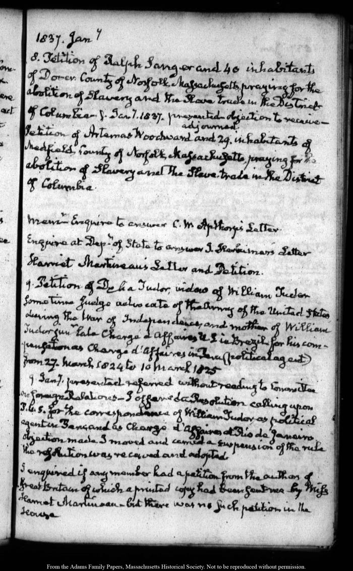 View full, authoritative transcriptions with page images of the diaries at John Quincy Adams Digital Diary part of the Primary Source Cooperative at the MHS.