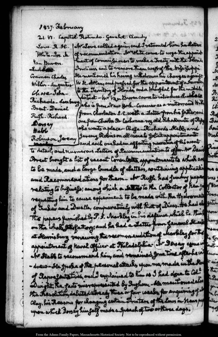 View full, authoritative transcriptions with page images of the diaries at John Quincy Adams Digital Diary part of the Primary Source Cooperative at the MHS.