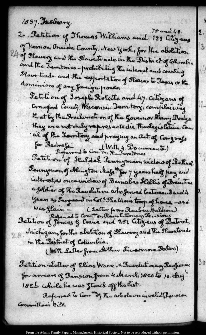 View full, authoritative transcriptions with page images of the diaries at John Quincy Adams Digital Diary part of the Primary Source Cooperative at the MHS.