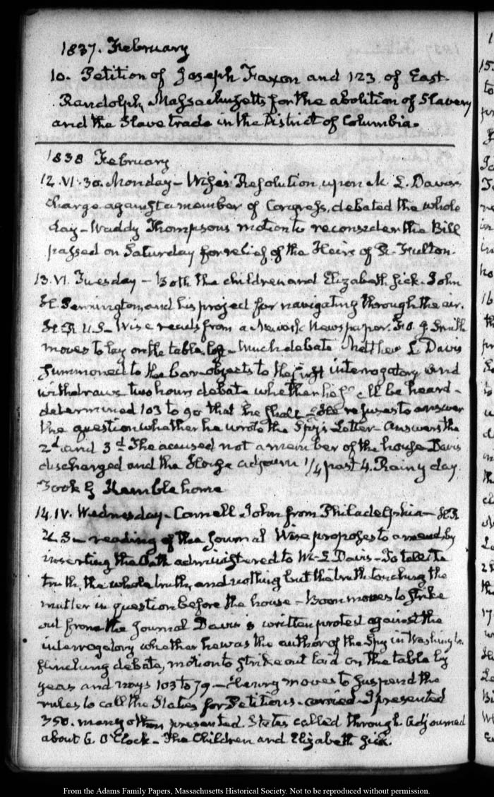 View full, authoritative transcriptions with page images of the diaries at John Quincy Adams Digital Diary part of the Primary Source Cooperative at the MHS.
