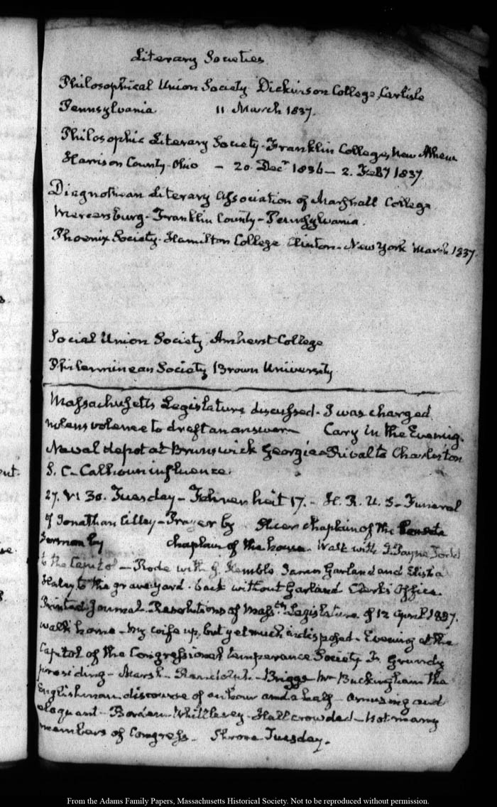 View full, authoritative transcriptions with page images of the diaries at John Quincy Adams Digital Diary part of the Primary Source Cooperative at the MHS.