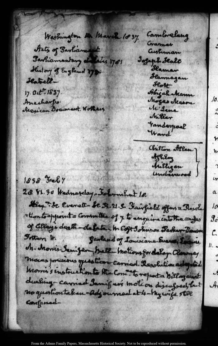 View full, authoritative transcriptions with page images of the diaries at John Quincy Adams Digital Diary part of the Primary Source Cooperative at the MHS.