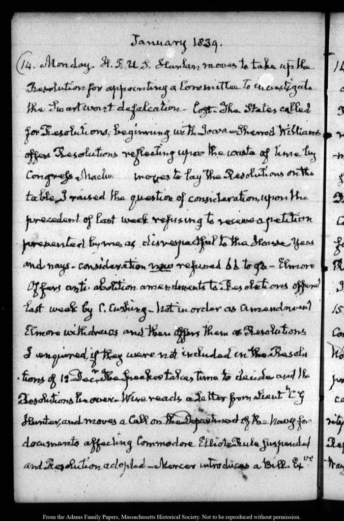 View full, authoritative transcriptions with page images of the diaries at John Quincy Adams Digital Diary part of the Primary Source Cooperative at the MHS.