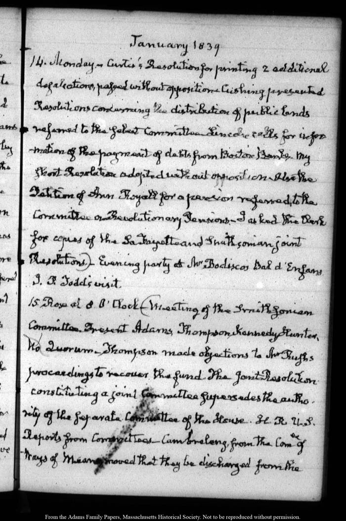 View full, authoritative transcriptions with page images of the diaries at John Quincy Adams Digital Diary part of the Primary Source Cooperative at the MHS.