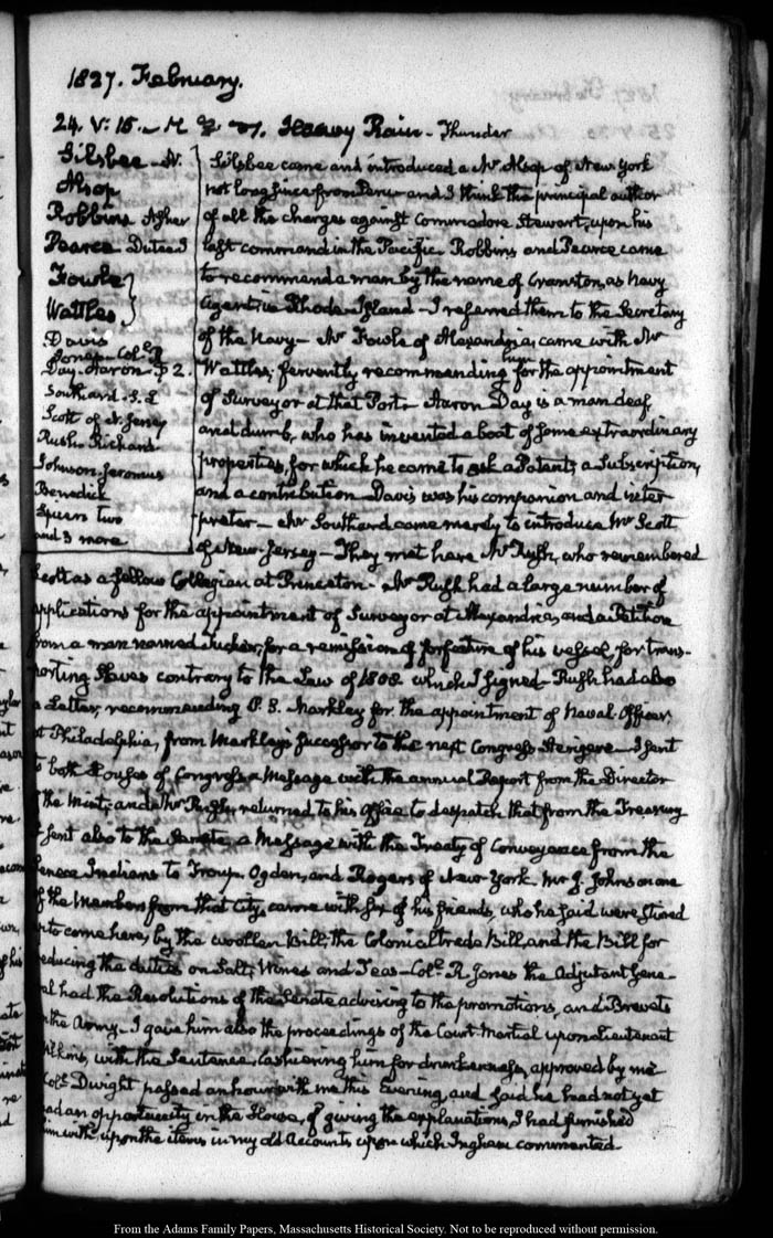 View full, authoritative transcriptions with page images of the diaries at John Quincy Adams Digital Diary part of the Primary Source Cooperative at the MHS.