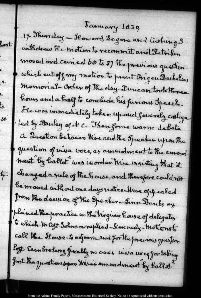 View full, authoritative transcriptions with page images of the diaries at John Quincy Adams Digital Diary part of the Primary Source Cooperative at the MHS.