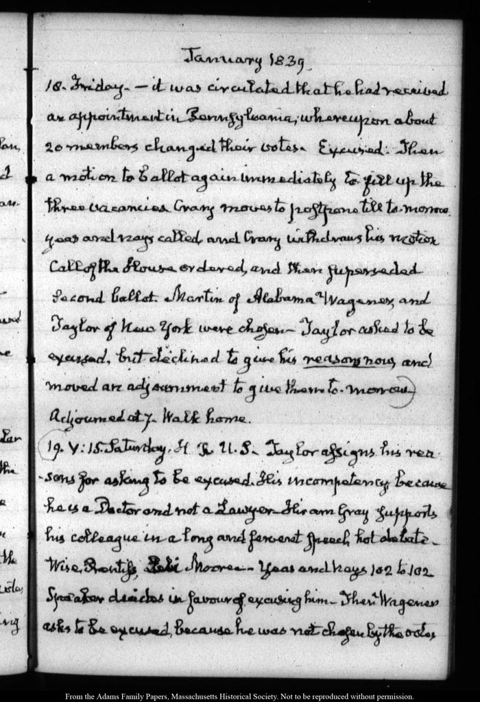 View full, authoritative transcriptions with page images of the diaries at John Quincy Adams Digital Diary part of the Primary Source Cooperative at the MHS.