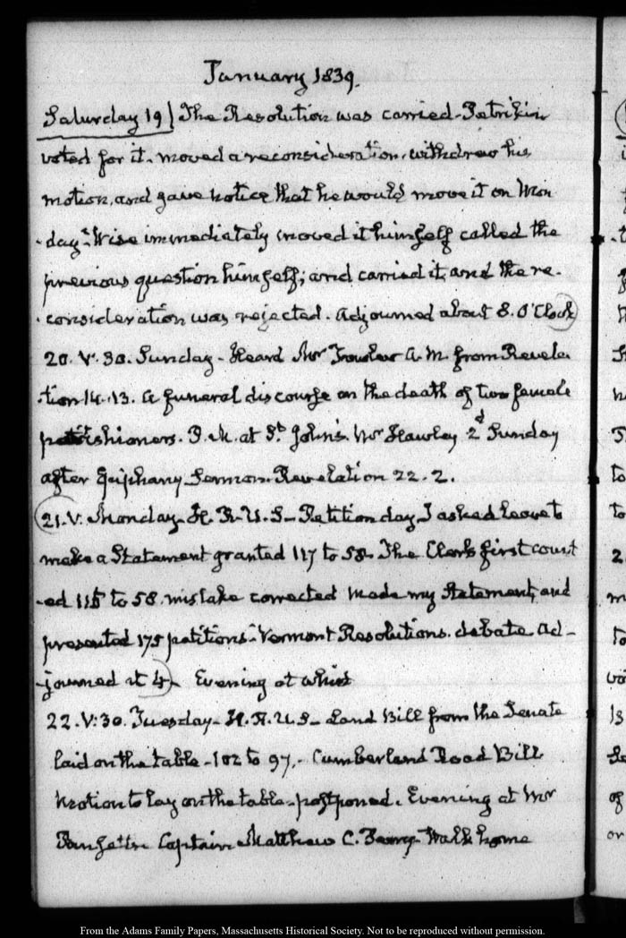 View full, authoritative transcriptions with page images of the diaries at John Quincy Adams Digital Diary part of the Primary Source Cooperative at the MHS.
