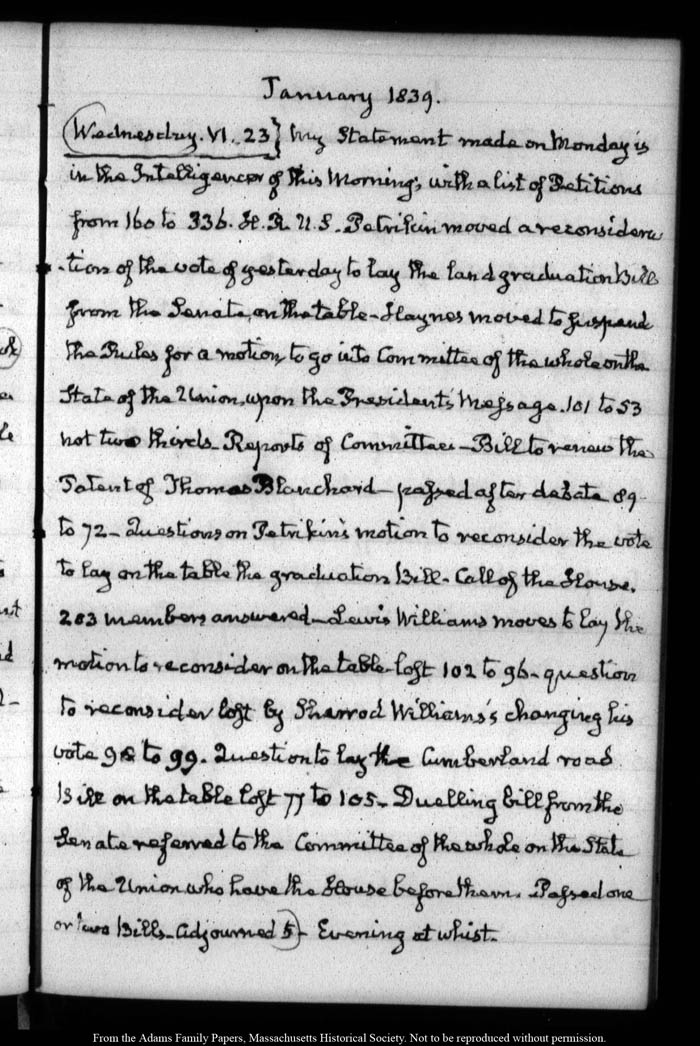 View full, authoritative transcriptions with page images of the diaries at John Quincy Adams Digital Diary part of the Primary Source Cooperative at the MHS.