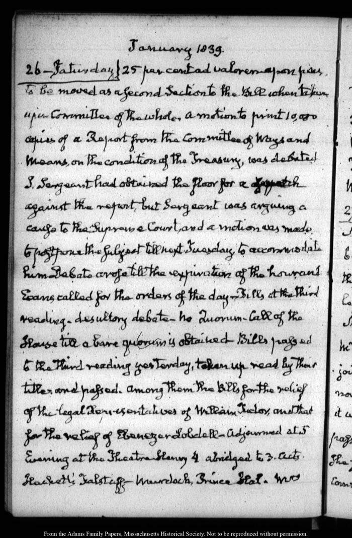 View full, authoritative transcriptions with page images of the diaries at John Quincy Adams Digital Diary part of the Primary Source Cooperative at the MHS.