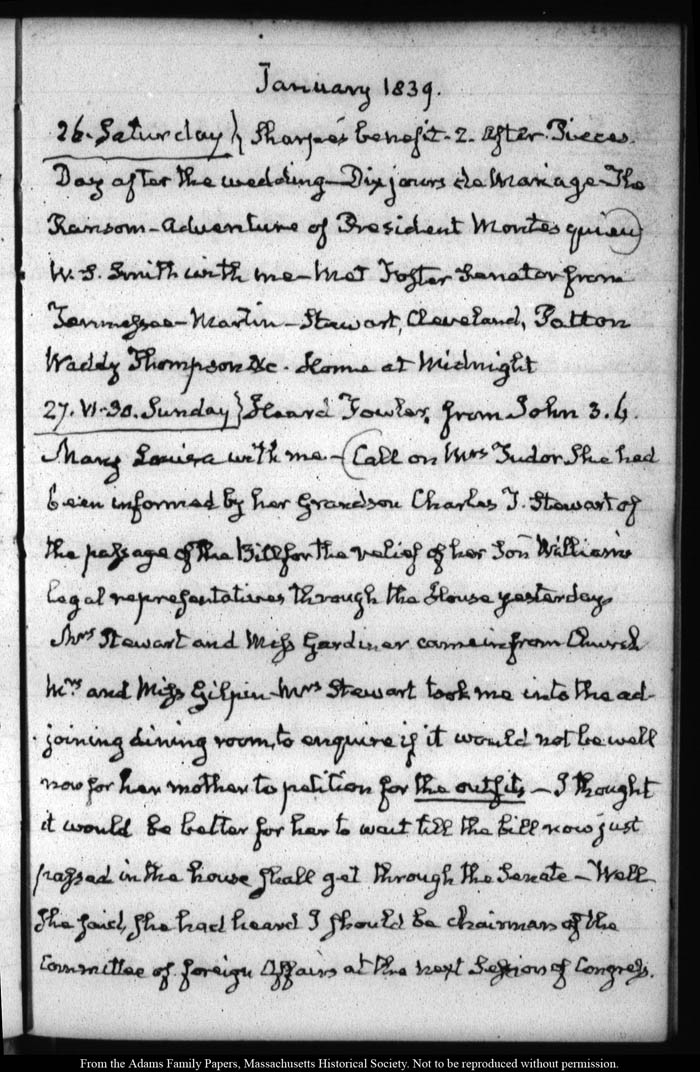 View full, authoritative transcriptions with page images of the diaries at John Quincy Adams Digital Diary part of the Primary Source Cooperative at the MHS.