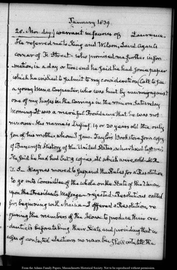View full, authoritative transcriptions with page images of the diaries at John Quincy Adams Digital Diary part of the Primary Source Cooperative at the MHS.