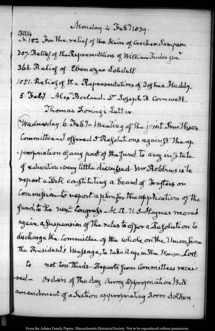 View full, authoritative transcriptions with page images of the diaries at John Quincy Adams Digital Diary part of the Primary Source Cooperative at the MHS.