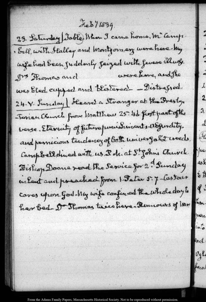 View full, authoritative transcriptions with page images of the diaries at John Quincy Adams Digital Diary part of the Primary Source Cooperative at the MHS.