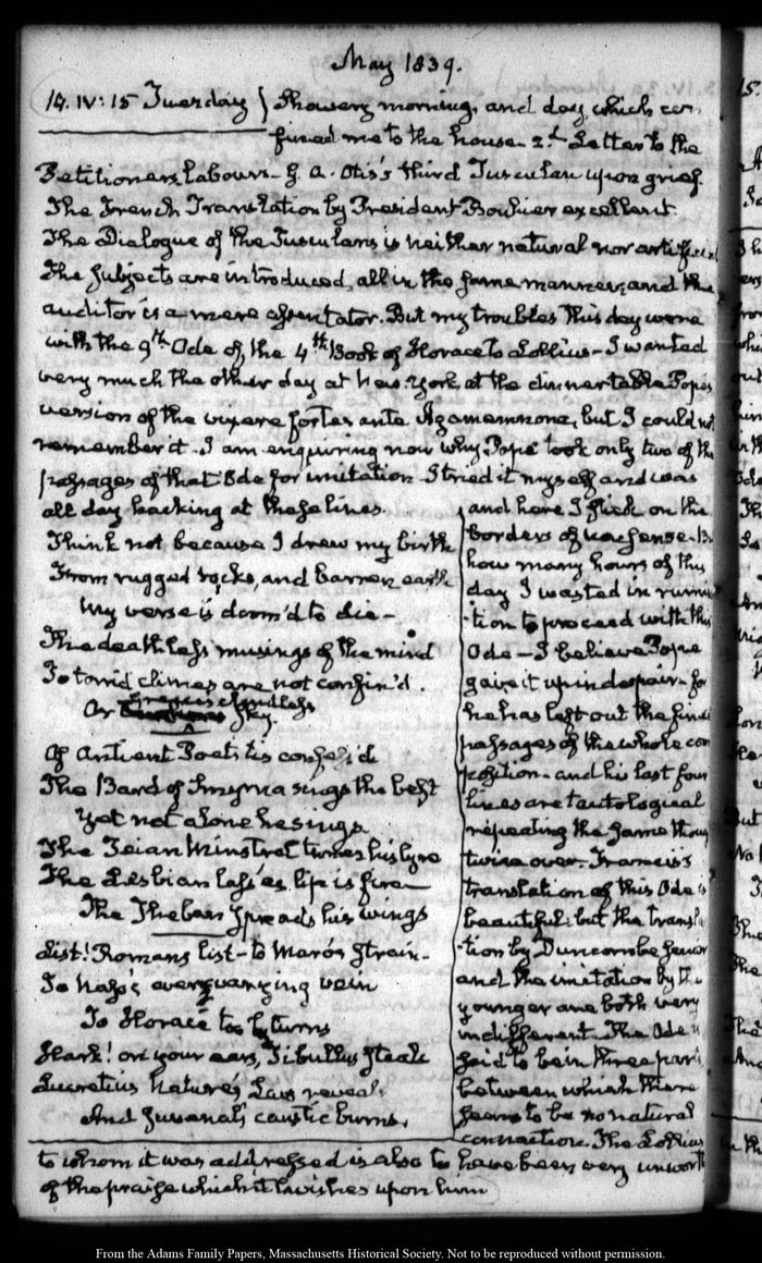 View full, authoritative transcriptions with page images of the diaries at John Quincy Adams Digital Diary part of the Primary Source Cooperative at the MHS.