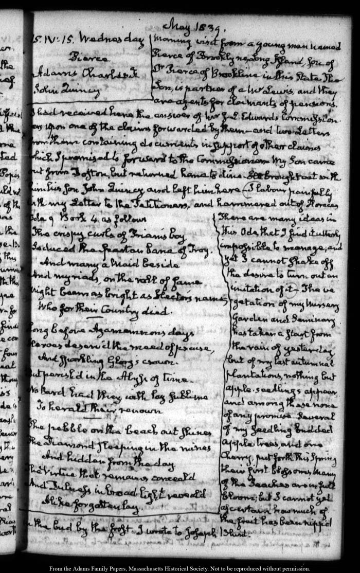 View full, authoritative transcriptions with page images of the diaries at John Quincy Adams Digital Diary part of the Primary Source Cooperative at the MHS.