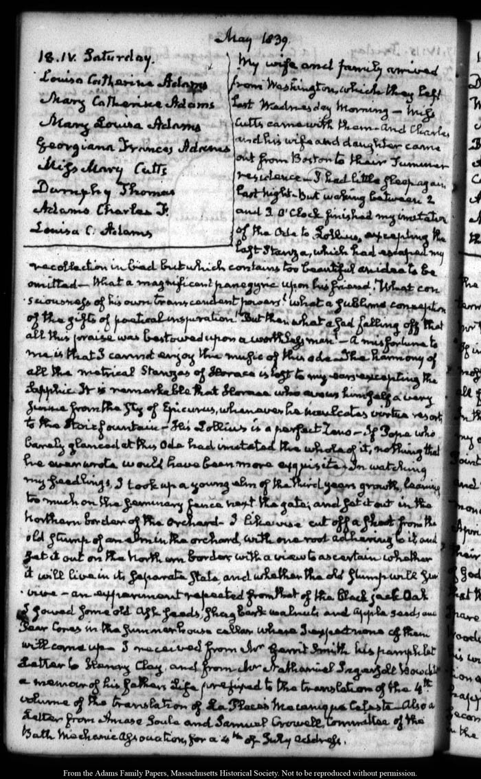 View full, authoritative transcriptions with page images of the diaries at John Quincy Adams Digital Diary part of the Primary Source Cooperative at the MHS.