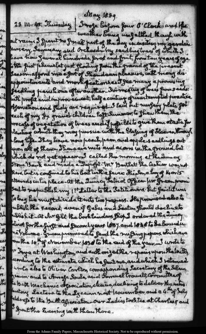 View full, authoritative transcriptions with page images of the diaries at John Quincy Adams Digital Diary part of the Primary Source Cooperative at the MHS.