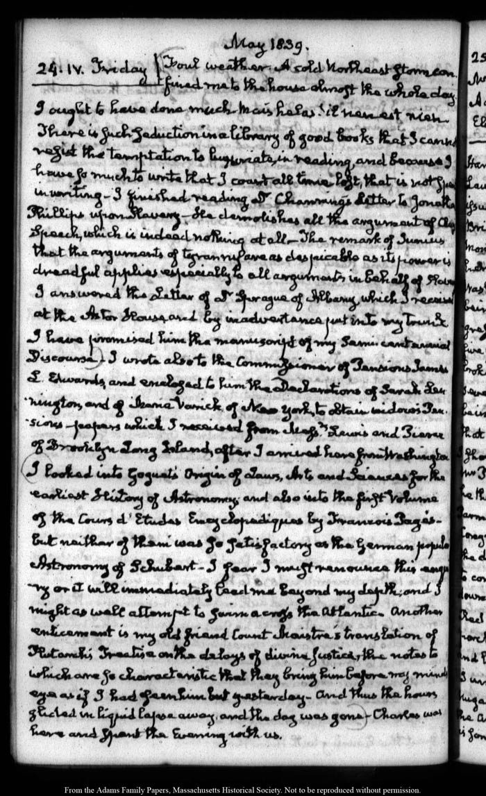 View full, authoritative transcriptions with page images of the diaries at John Quincy Adams Digital Diary part of the Primary Source Cooperative at the MHS.