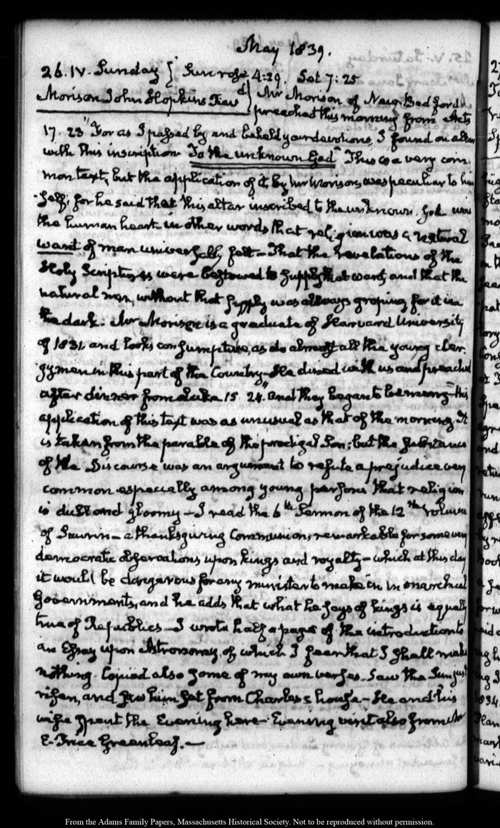 View full, authoritative transcriptions with page images of the diaries at John Quincy Adams Digital Diary part of the Primary Source Cooperative at the MHS.