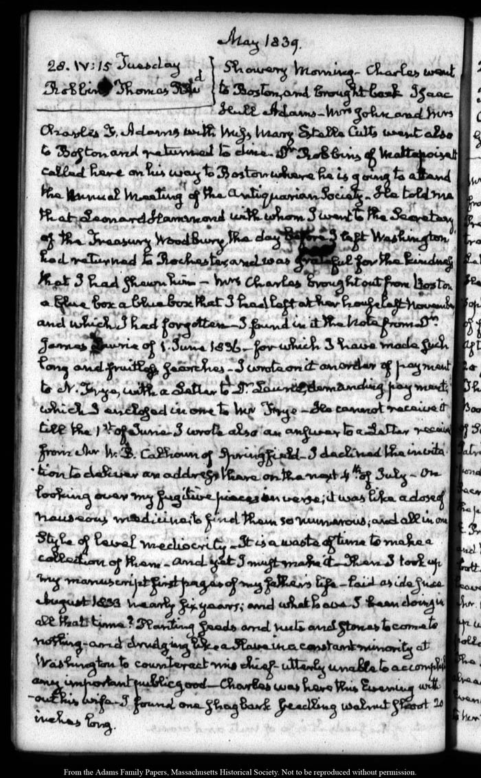 View full, authoritative transcriptions with page images of the diaries at John Quincy Adams Digital Diary part of the Primary Source Cooperative at the MHS.