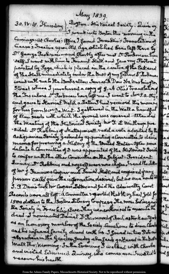 View full, authoritative transcriptions with page images of the diaries at John Quincy Adams Digital Diary part of the Primary Source Cooperative at the MHS.