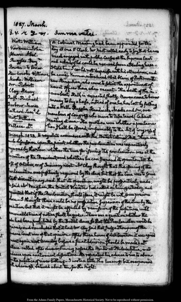View full, authoritative transcriptions with page images of the diaries at John Quincy Adams Digital Diary part of the Primary Source Cooperative at the MHS.