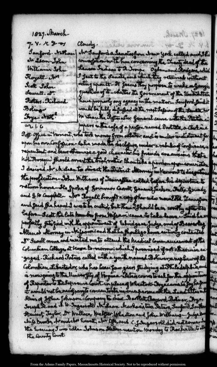 View full, authoritative transcriptions with page images of the diaries at John Quincy Adams Digital Diary part of the Primary Source Cooperative at the MHS.