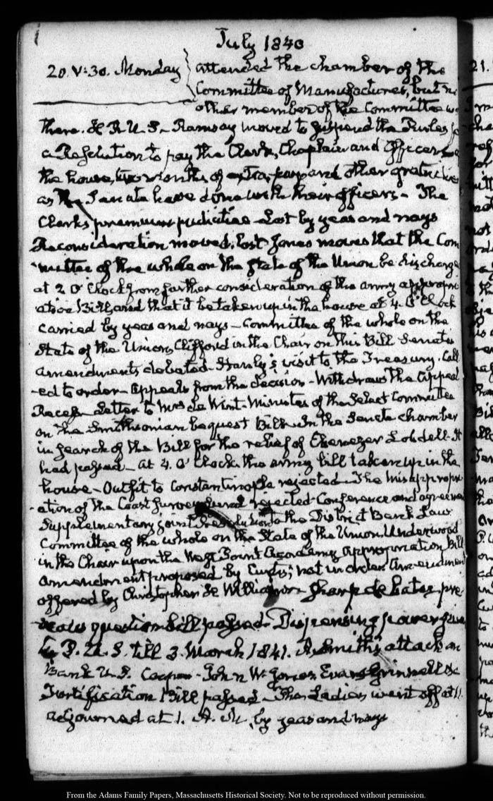 View full, authoritative transcriptions with page images of the diaries at John Quincy Adams Digital Diary part of the Primary Source Cooperative at the MHS.
