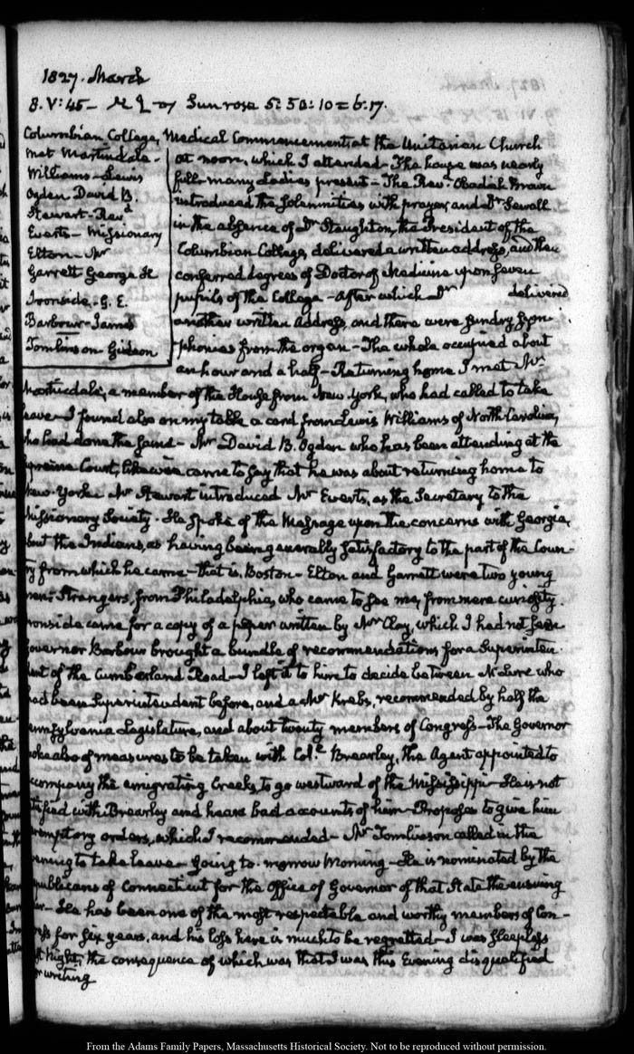 View full, authoritative transcriptions with page images of the diaries at John Quincy Adams Digital Diary part of the Primary Source Cooperative at the MHS.