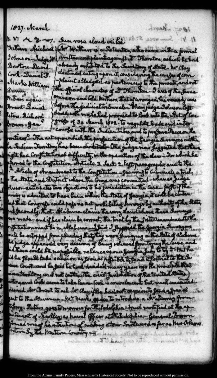 View full, authoritative transcriptions with page images of the diaries at John Quincy Adams Digital Diary part of the Primary Source Cooperative at the MHS.