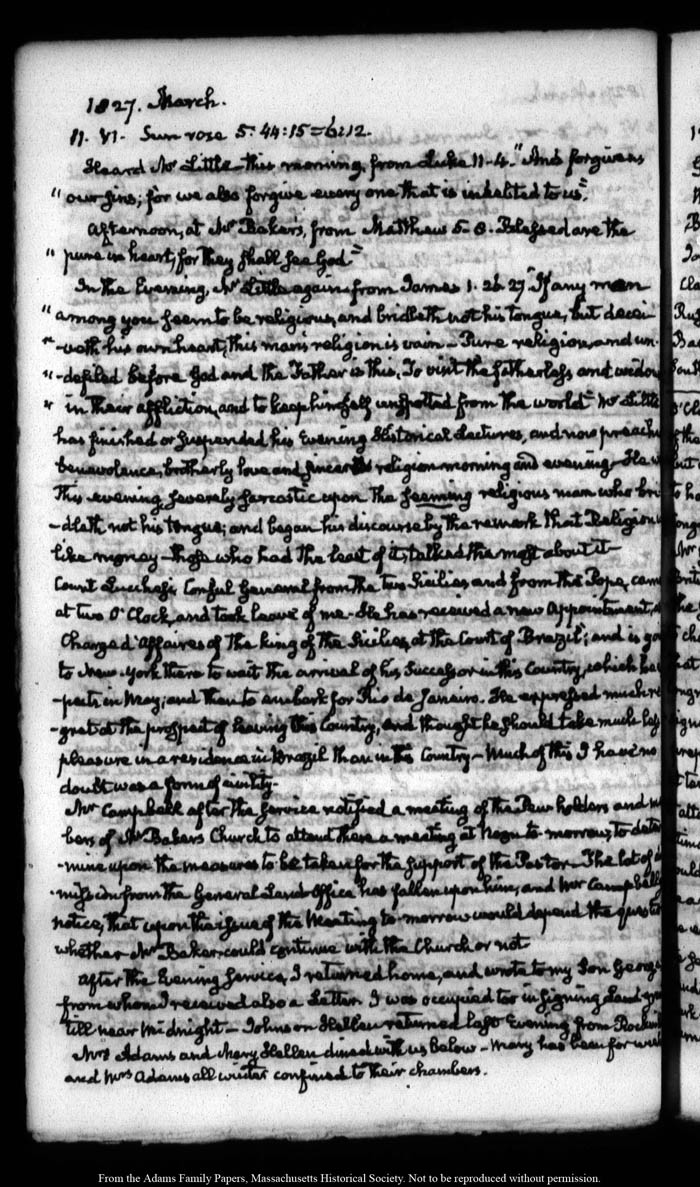 View full, authoritative transcriptions with page images of the diaries at John Quincy Adams Digital Diary part of the Primary Source Cooperative at the MHS.