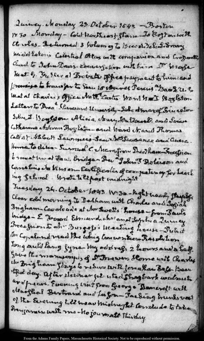 View full, authoritative transcriptions with page images of the diaries at John Quincy Adams Digital Diary part of the Primary Source Cooperative at the MHS.